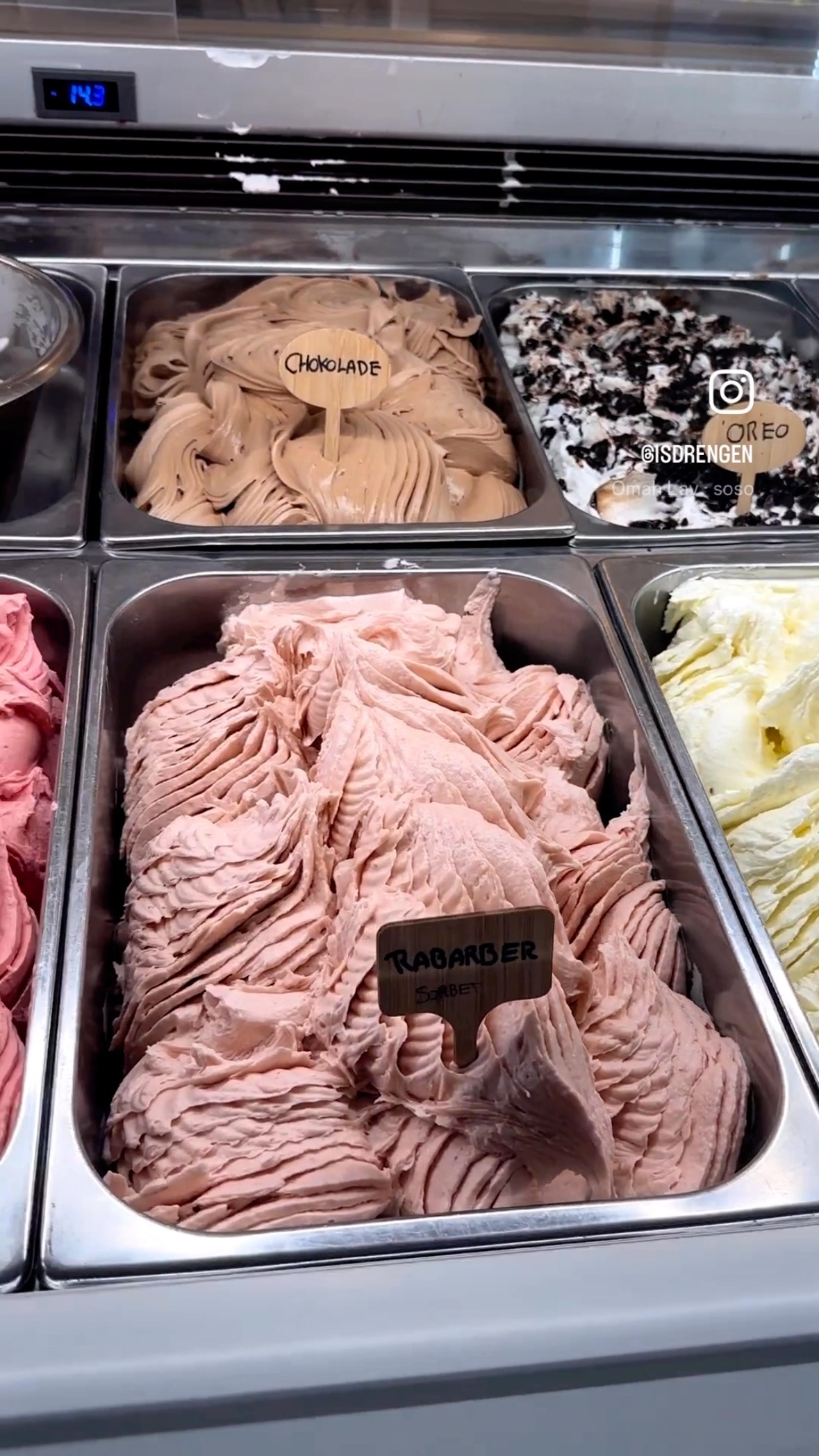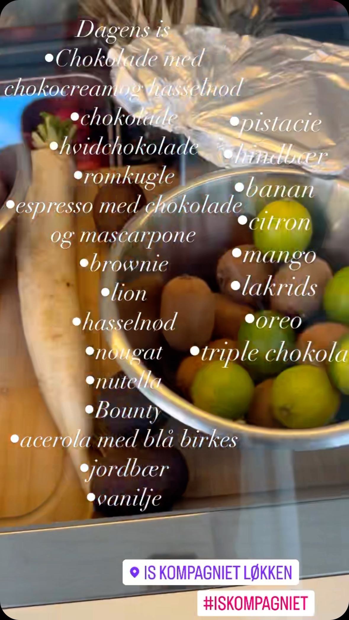 Vælg dine yndlingsis fra vores is sortiment med mere end 40 forskellige isvarianter - der kan laves specielle smage efter ønske.